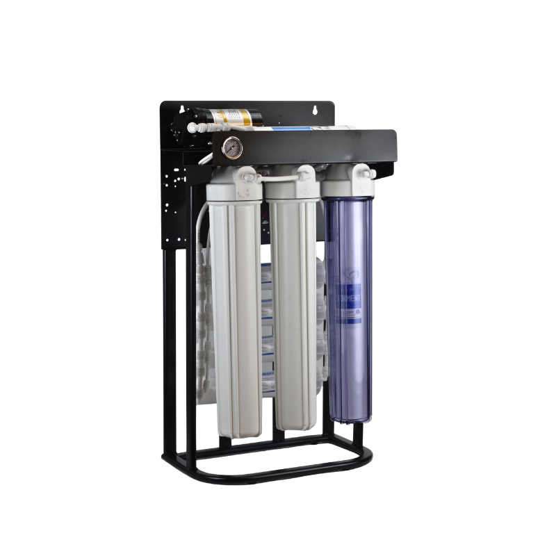 Orta ve büyük ölçekli işletmeler için yarı endüstriyel su arıtma sistemi. Big Blue mavi filtre housingleri ile yüksek akış hızı ve uzun filtre ömrü sağlar. Profesyonel sınıf pompa sistemi ve basınç kontrolü ile güvenilir performans.