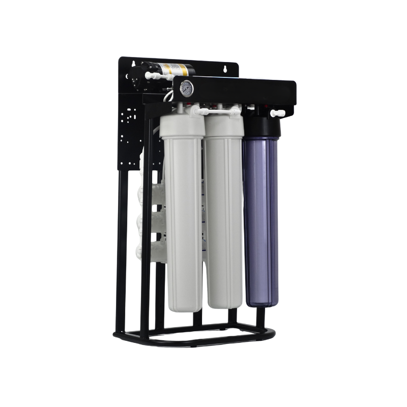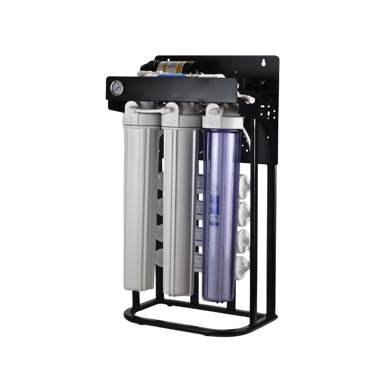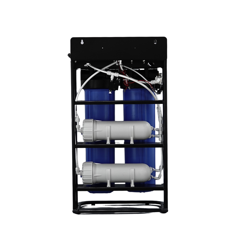 Yüksek su tüketimli işletmeler için geliştirilmiş ticari arıtma sistemi. Güçlendirilmiş pompa ve genişletilmiş filtrasyon kapasitesi ile kesintisiz temiz su sağlar. Dayanıklı çelik iskelet ve 20 inç endüstriyel filtreler ile uzun ömürlü performans.